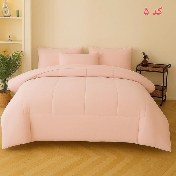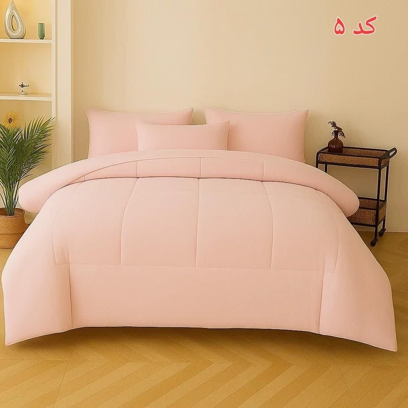 5 تیکه هست که سال: یک عدد لحاف دو عدد روبالشی و یک عدد روکوسنی و یک عدد ملافه کشدار تخت میباشد