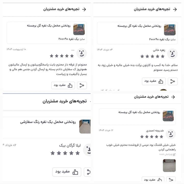دو تیکه میباشد. یک نفره شامل یک روکش کشدوزی شده مخمل (دور تا دور کشدوزی شده است) و یک روبالشی میباشد